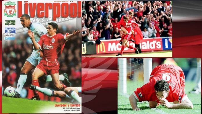 Ένα παιχνίδι στο οποίο οι «Reds» βρέθηκαν πίσω στο σκορ από το 1ο λεπτό, με τον Olivier Dacourt να σκοράρει για τους φιλοξενούμενους. O Robbie Fowler απάντησε όμως γρήγορα, σκοράροντας με πέναλτι στο 15′ μπροστά στον κόσμο της Everton, γκολ που πανηγύρισε με τον διάσημο πανηγυρισμό του, στον οποίο «σνίφαρε» την γραμμή του γηπέδου! Αυτή του η κίνηση ήταν μια περιπαικτική απάντηση στους οπαδούς των Toffees, οι οποίοι διέδιδαν φήμες στην πόλη, για σχέση του “God” με απαγορευμένες ουσίες