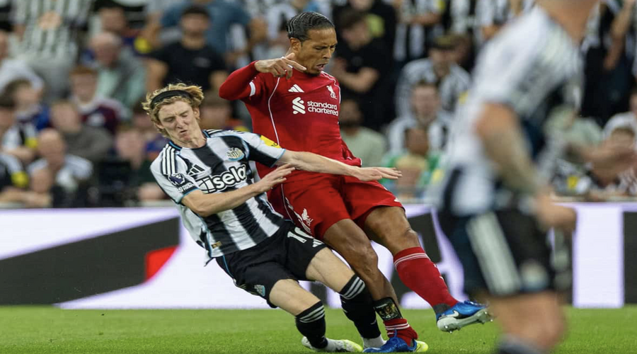 Ο επιθετικός των Magpies αντίκρισε την απευθείας κόκκινη κάρτα έπειτα από έλεγχο του Simon Hooper στο VAR λόγω ενός φάουλ πολύ βίαιου τάκλιν στον αστράγαλο του Virgil van Dijk.