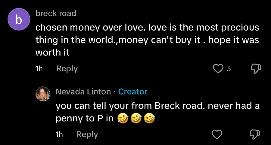 Έχει κι άλλο! Ένας χρήστης με όνομα Breck Road, κεντρική οδός κοντά στο Anfield, απάντησε πως «Επέλεξε το χρήμα από την αγάπη. Η αγάπη είναι το πιο πολύτιμο πράγμα στη ζωή, τα χρήματα δεν μπορούν να την αγοράσουν. Ελπίζω να άξιζε», με την ξαδέρφη του παίκτη να απαντά πως «φαίνεται ότι είσαι από την Breck Road, δεν είχες ποτέ ούτε μαντήλι να κλάψεις!».