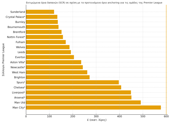 Ακόμη κι έτσι, το προτεινόμενο όριο του anchoring δεν θα ανάγκαζε ξαφνικά τις κορυφαίες ομάδες της Αγγλίας να κόψουν δραστικά τα έξοδα για παίκτες.